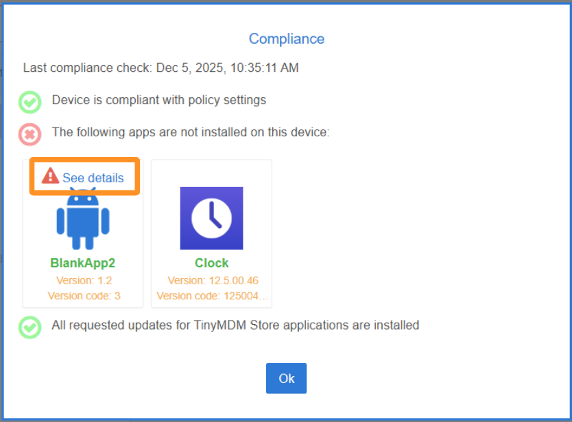 The package name of an application is its unique Android identifier. Two applications cannot have the same package name; otherwise, they will be considered a single application by the devices. This is why the Private Play Store does not allow the addition of a private or public application whose package name is already known to their services. From the TinyMDM Store, you can add an application whose package name is known to the Play Store, but only if the application has not already been approved from another store. Indeed, if the same application (same package name) is approved from two different stores on your console (the Play Store and the TinyMDM Store, for example), both stores will attempt to install the same application on the device, which creates a conflict, even if they are two different versions.