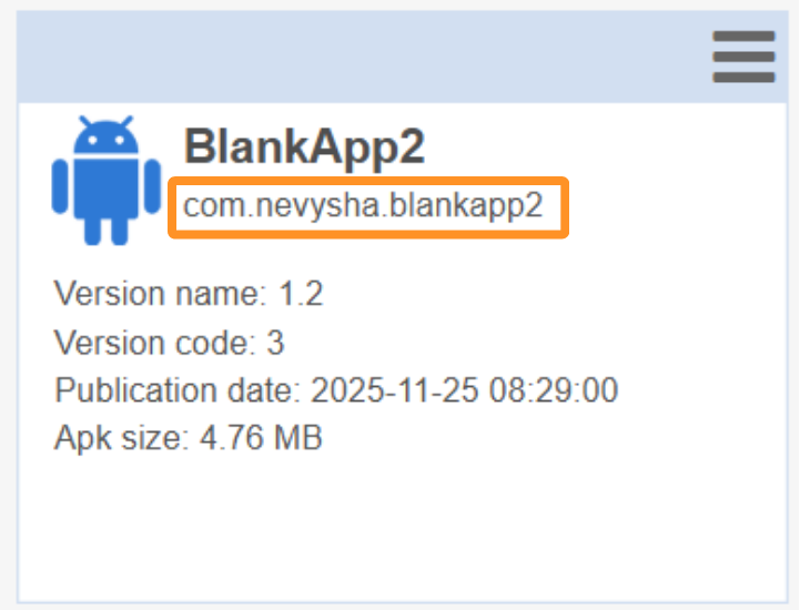 For an application to be updated, the package name of the new version must be identical to that of the previous version so that the device’s Android system recognizes that it is indeed the same application and initiates the update.