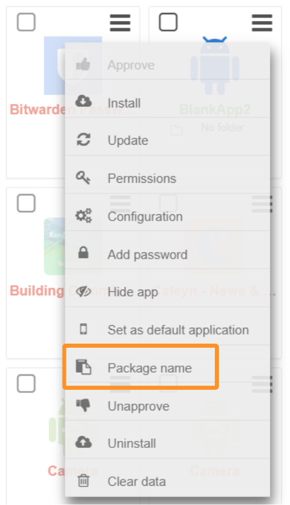 The package name for all applications is accessible from the Policies tab. To access it, open the desired policy, then:
