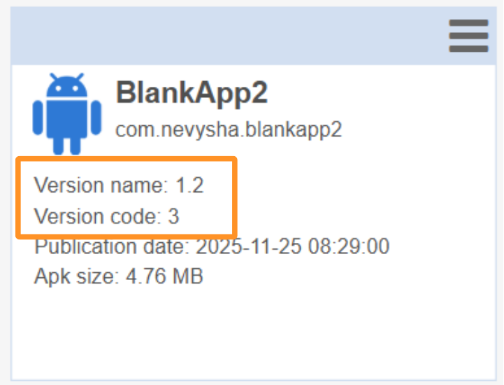 Every Android application has two version identifiers: the version name and the version code. Both are defined by the application developer: