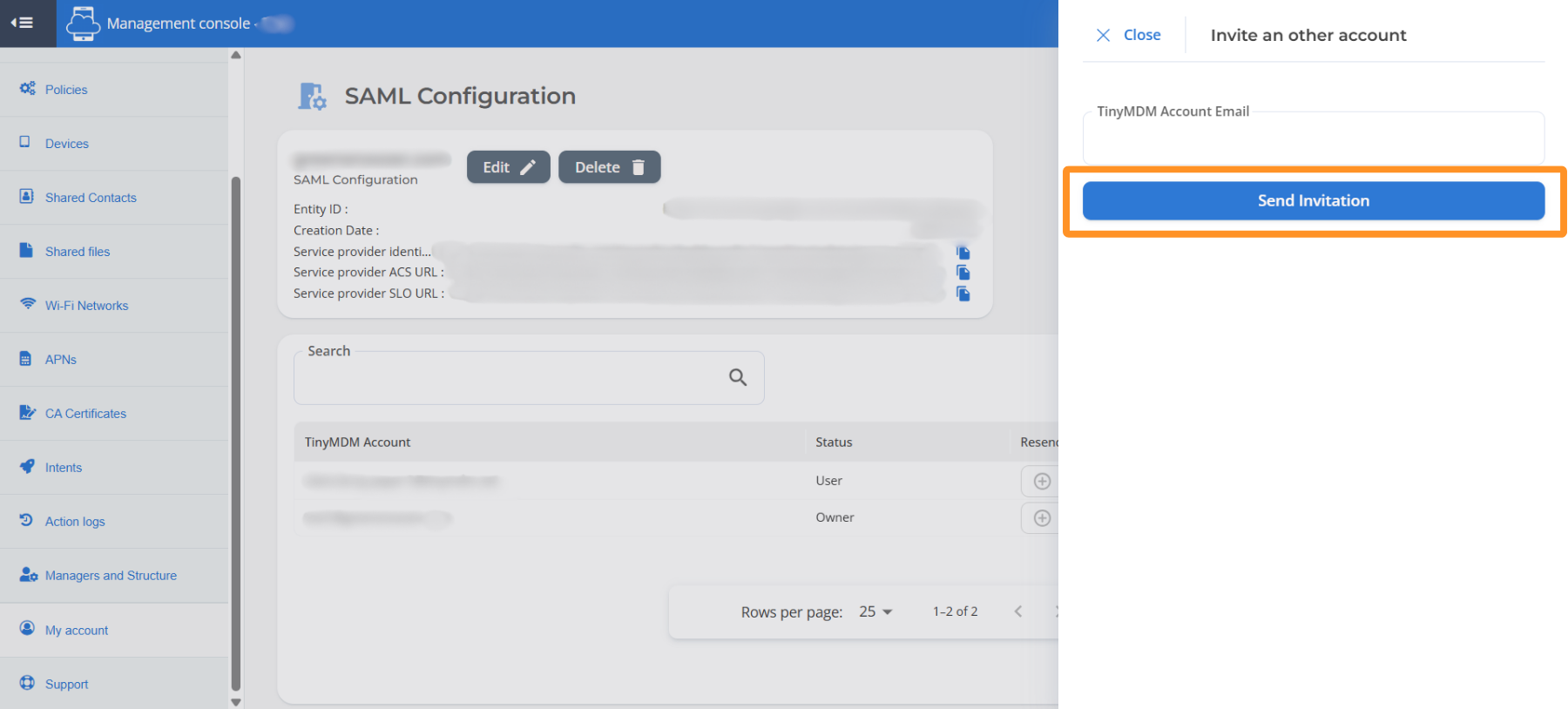 B. Invite another TinyMDM account administrator to your SAML configuration