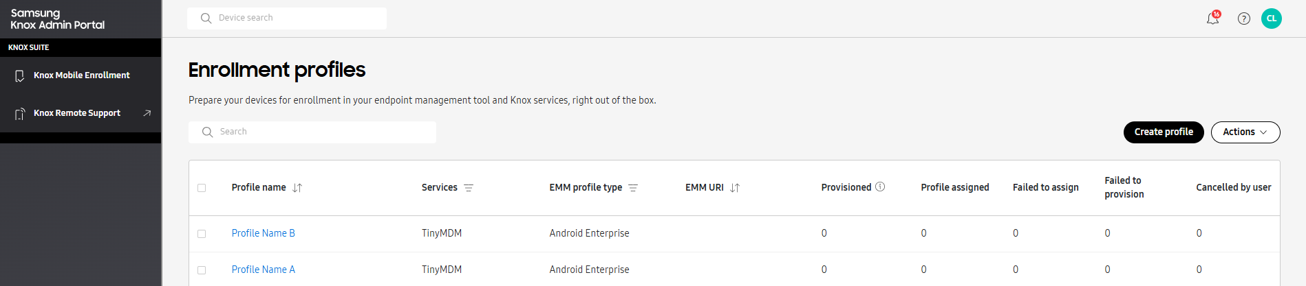 With the new option available in Knox Mobile Enrollment (KME), it is now possible to associate multiple MDM profiles with a single CSV file. This feature is particularly useful for customers enrolling devices in different management modes (such as WPCO mode and fully managed mode) via KME. By centralizing the management into a single CSV file, you can avoid creating multiple files for each profile, simplifying the process.