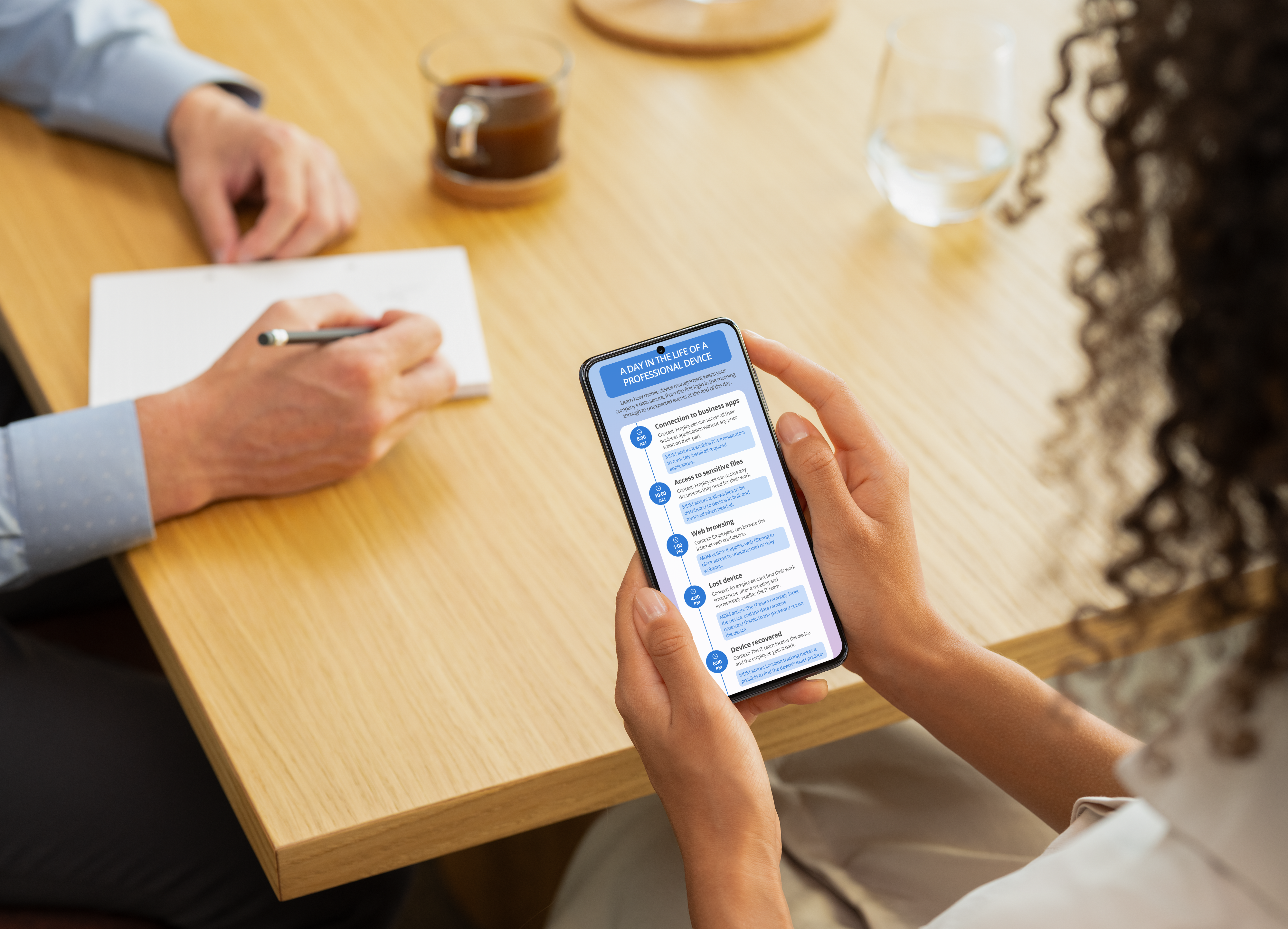This infographic shows a typical day for a business device and how MDM secures every use case.